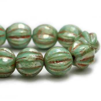 6mm Fern Picasso Czech Melon Round – 25 pieces – 4776R