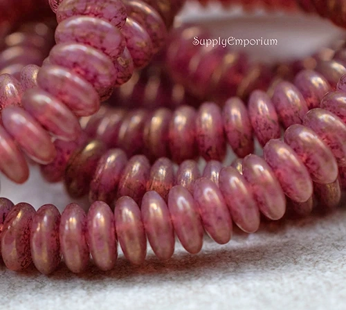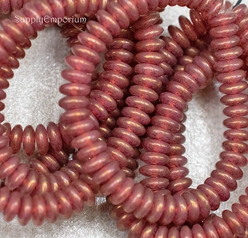 6mm Gold Wash Vintage Rose Opaline Czech Spacer Bead – 25 pieces – 1363R