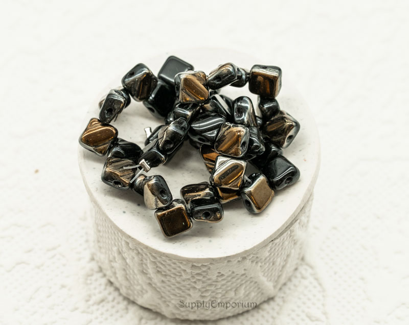 6mm Jet Valentinite Czech 2 Hole Silky – 40 Beads – 2404
