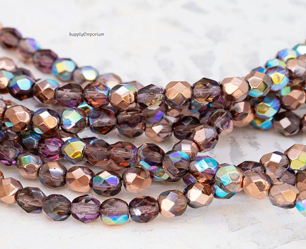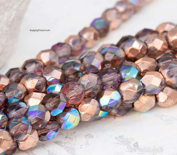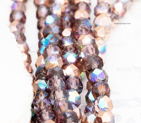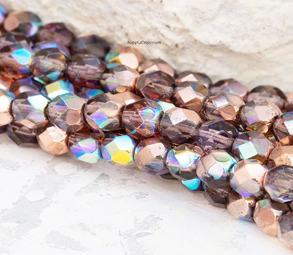 6mm Lt Amethyst Copper RBW CZK Czech Fire Polish Round – 25 pieces – 2169R