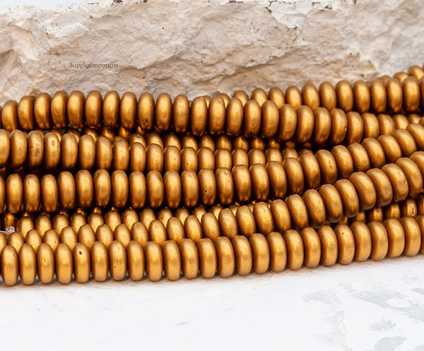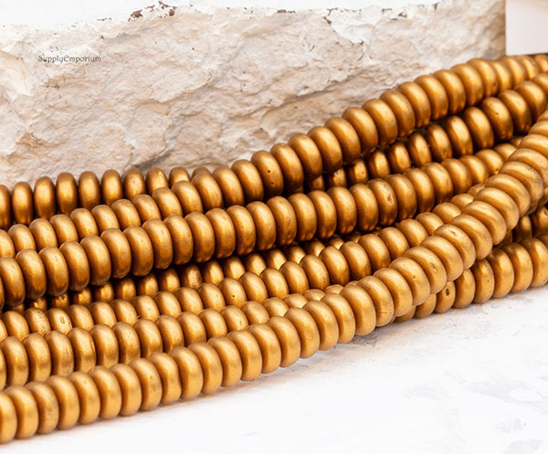 6mm Matte Metallic Antique Gold Czech Rondelle – 50 pieces – 5985R