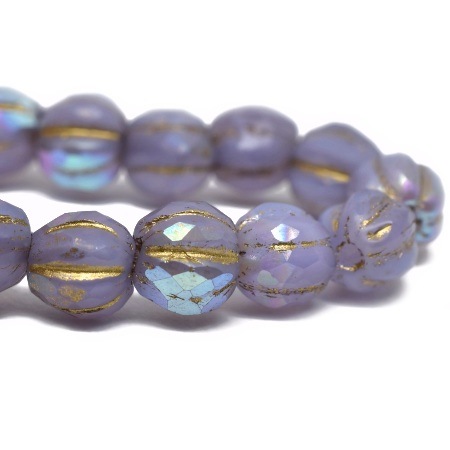 6mm Matte Thistle AB/Gold Wash Czech Faceted Melon – 25 pieces – 1573R