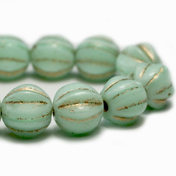 6mm Mint w Gold Wash Czech Melon Round – 25 pieces – 6443