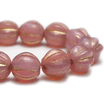 6mm Opal Dusty Rose with Gold Czech Melon Round – 25 pieces – 5567