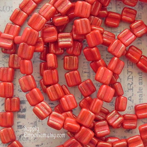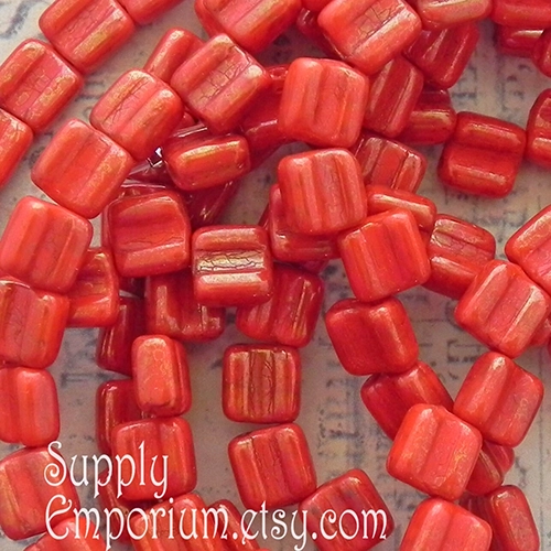 6mm Red Lumi Czech Groovy Tile – 30 pieces – 2556