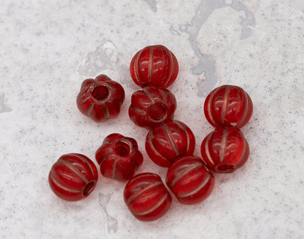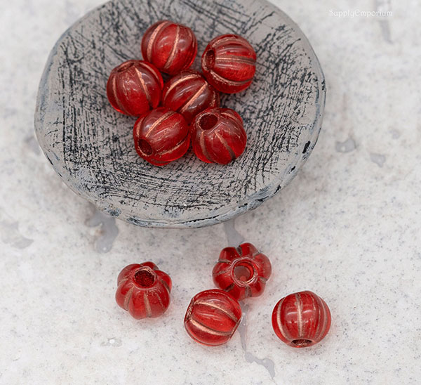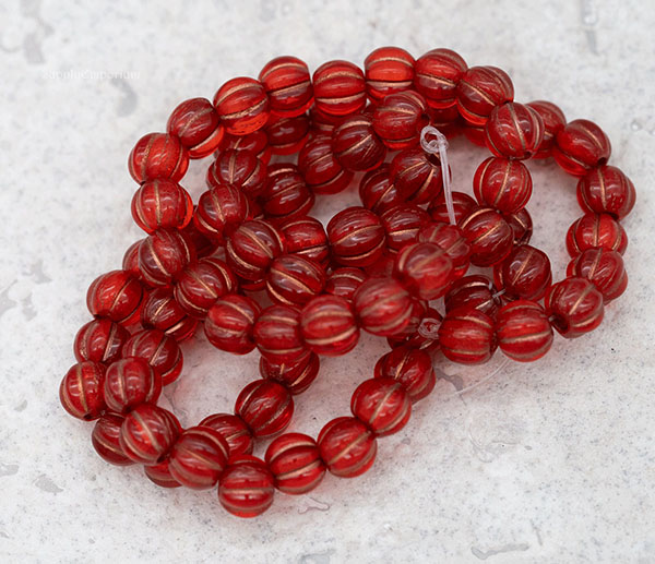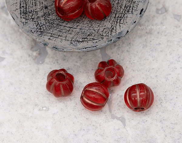 6mm Red Orange w Copper Czech Large Hole Melon – 25 pieces – 2967R