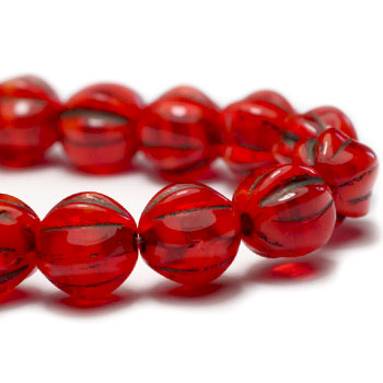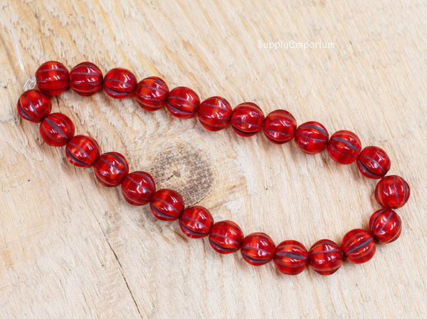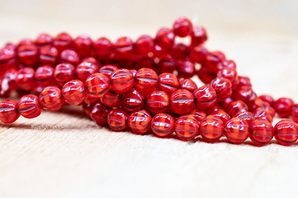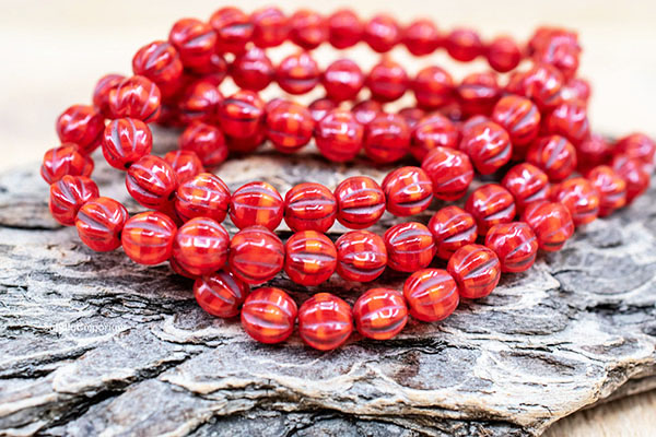 6mm Red with Brown Wash Czech Melon Round – 25 pieces – 5878R