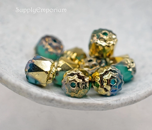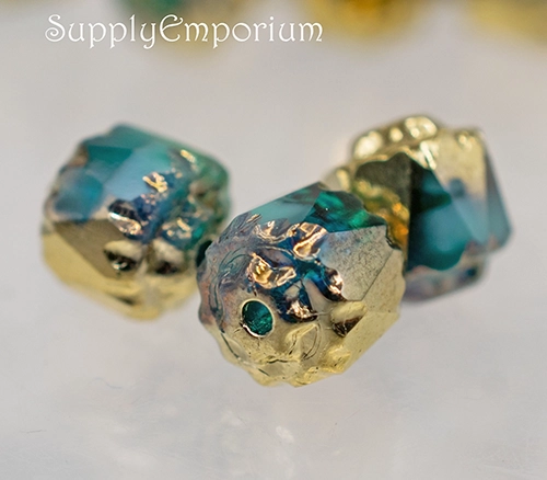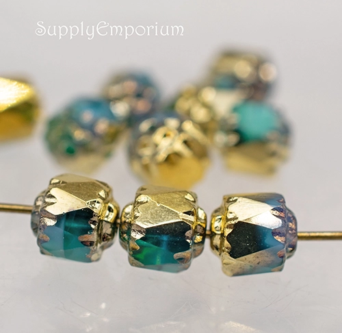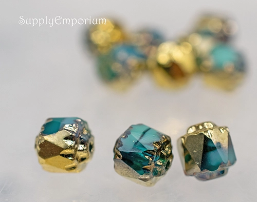 6mm Sky Blue Tea Green w/Gold Czech Cathedral – 20 Pieces – 5374R