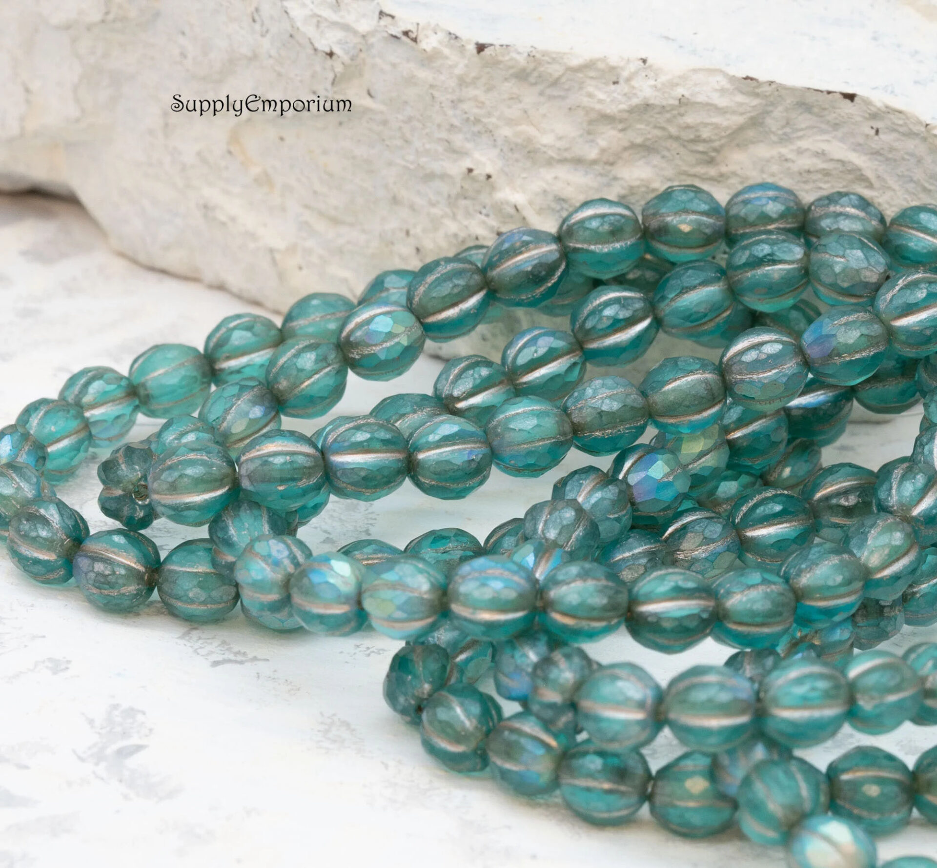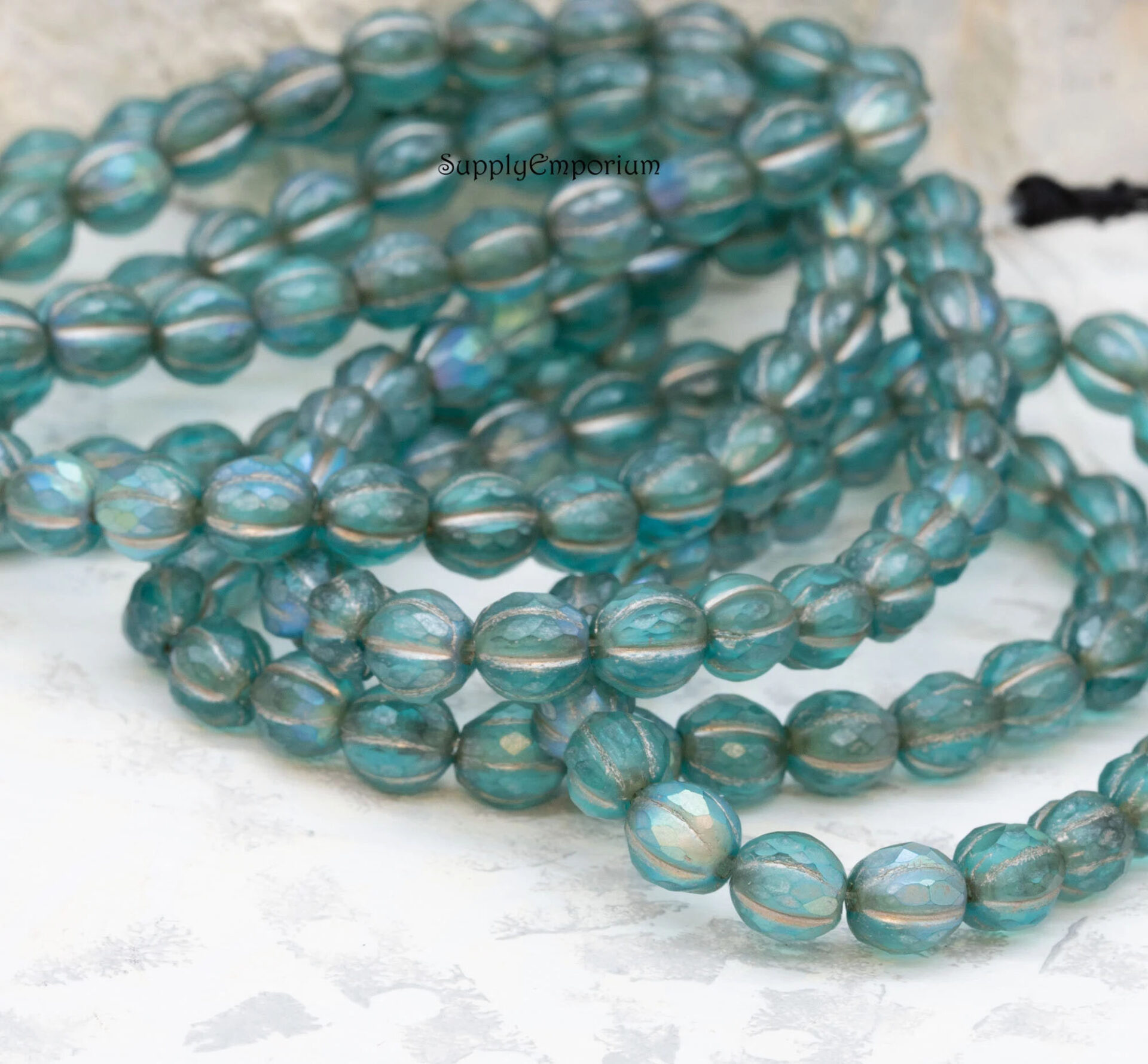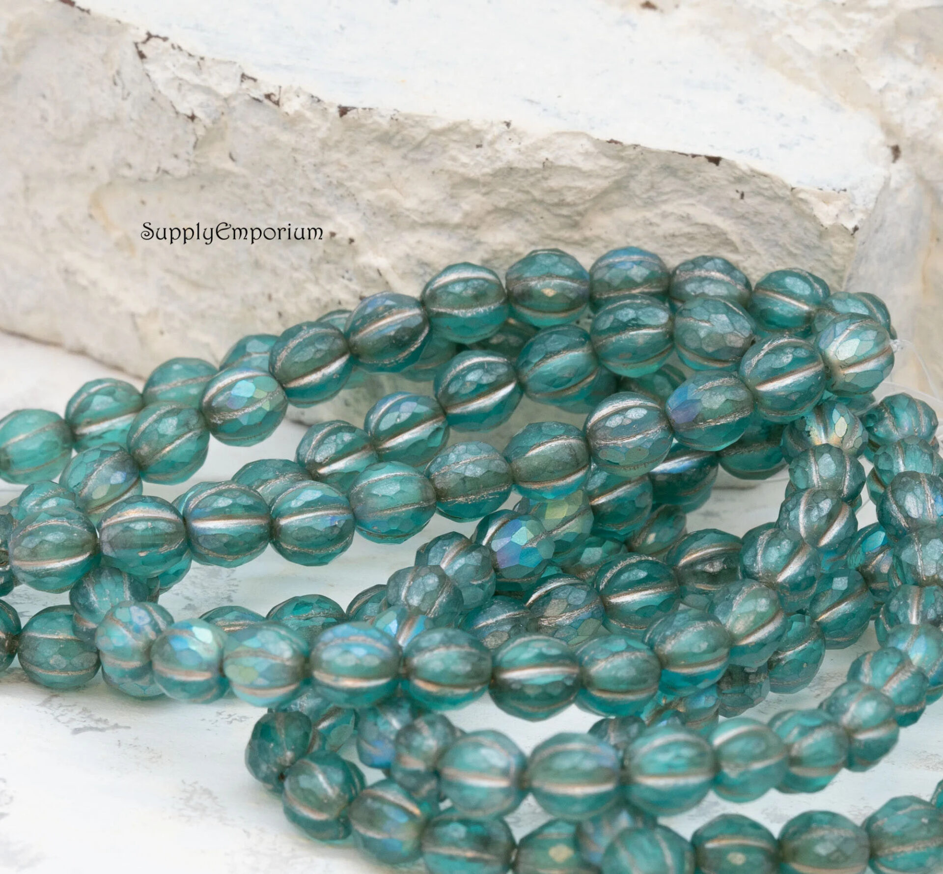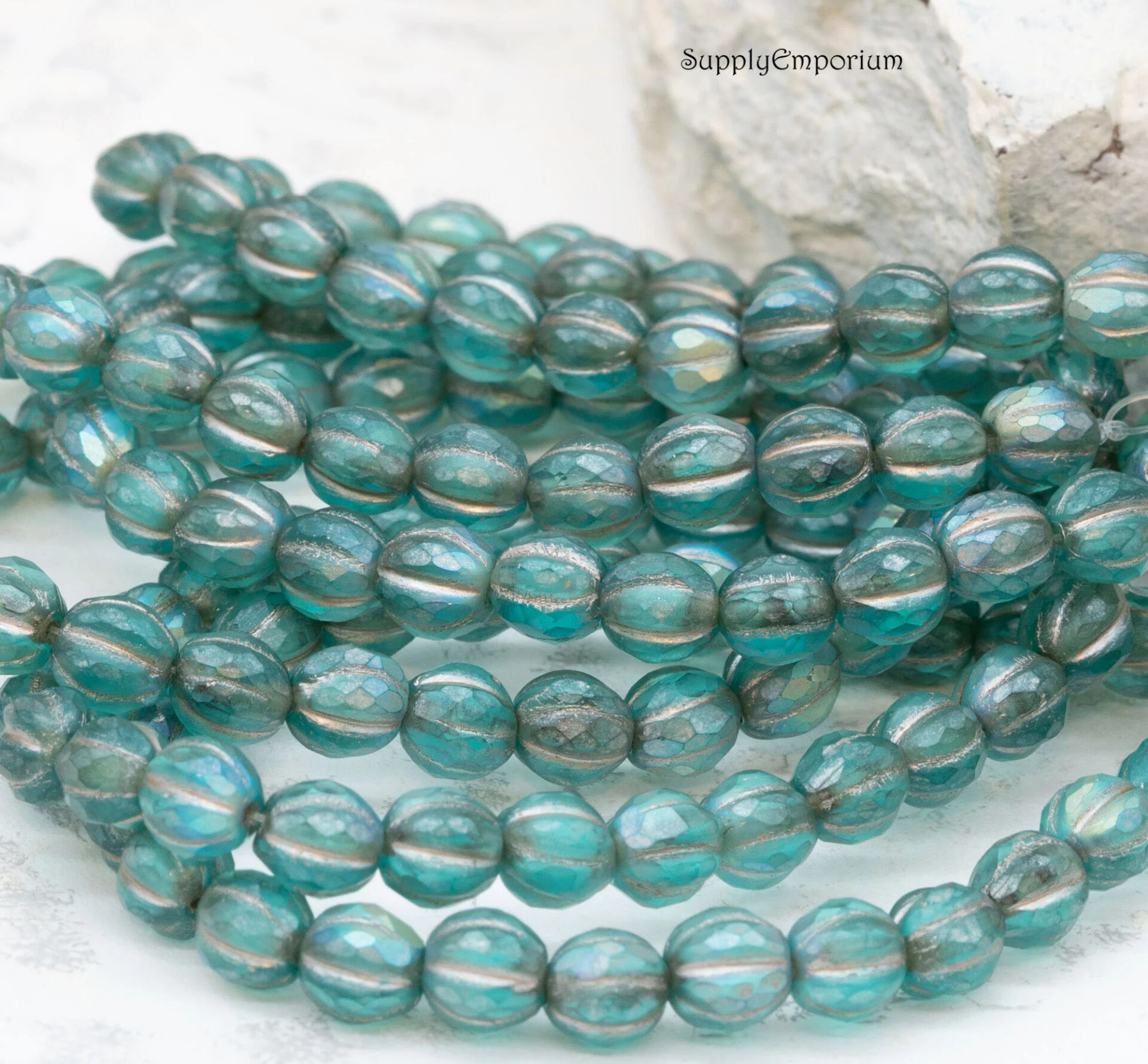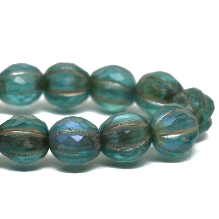 6mm Turquoise w/Matte and AB Wash Czech Melon Round – 25 pieces – 6590R