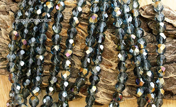 6mm Twilight Montana Blue Czech Fire Polish Round – 25 Pieces – 5776R