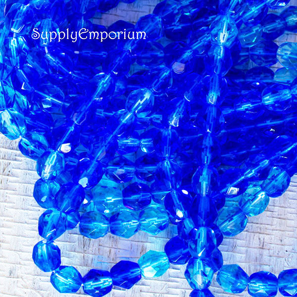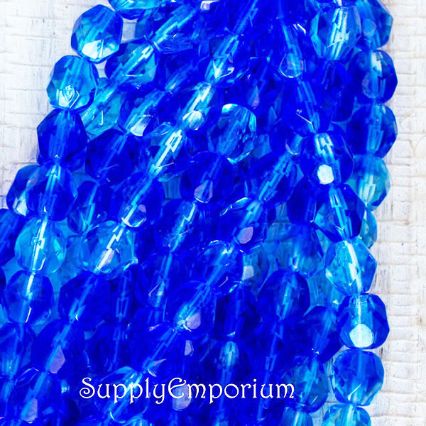 6mm Varigated Blue Czech Fire Polish Round – 25 Pieces – 1782