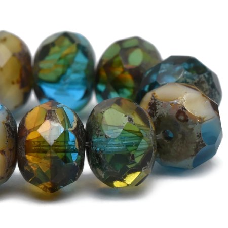 6x8mm Blue Topaz White Picasso Czech Rondelle – 20 pieces – 2605R