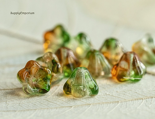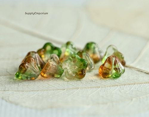 6x8mm Dual Coat Peach/Pear Czech Bell Flower – 20 pieces – 7313W
