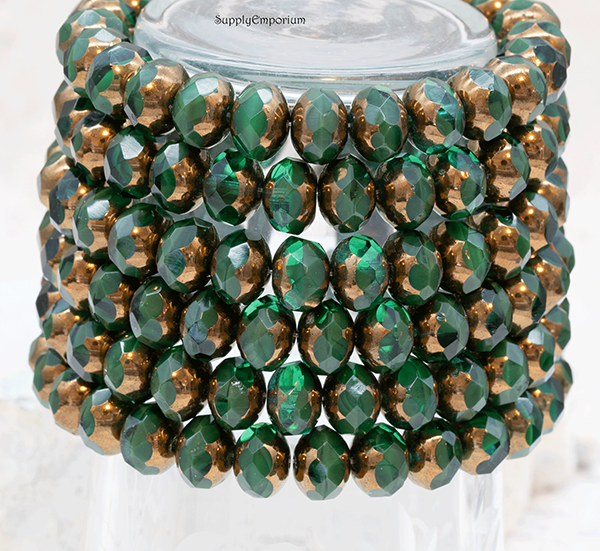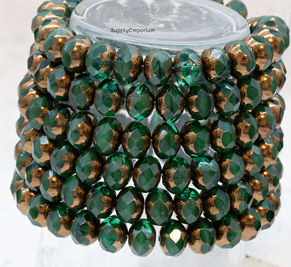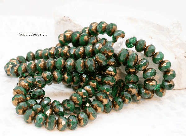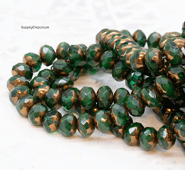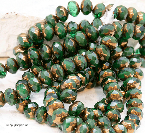 6x8mm Emerald Green w/Bronze Wash Czech Rondelle – 12 pieces – 3636RR