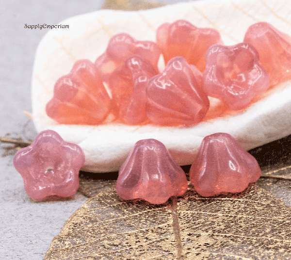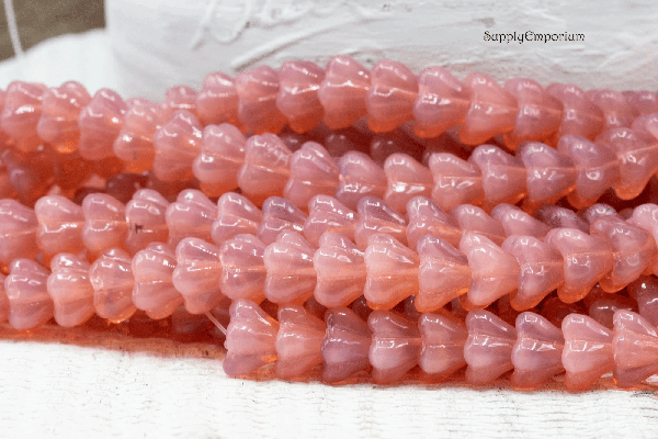 6x8mm Milky Pink Czech Bell Flower – 25 pieces – 7423W