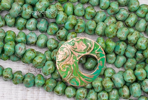 6x8mm Op Turquoise Picasso Czech Nugget – 25 pieces – 2915R