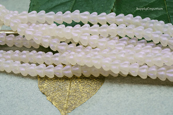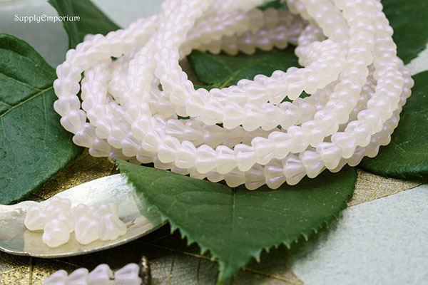 6x8mm Opalescent Milky Pink Czech Bell Flower – 10 pieces – 7426W
