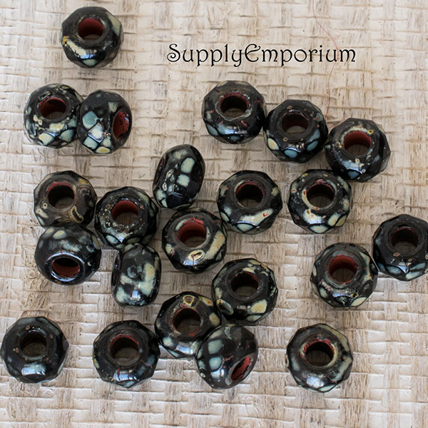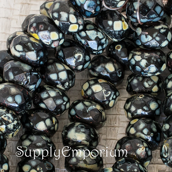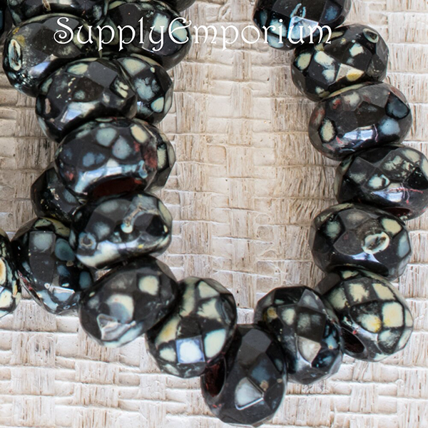 6x9mm Black Picasso Czech Roller Bead – 12 pieces – 5440ROC22