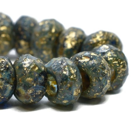 6x9mm Etched Sapphire and Sky Blue w Gold Czech Roller Bead – 25 pieces – 6446ROC30