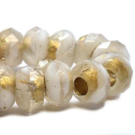 6x9mm Gold Lined White Czech Roller Bead – 10 pieces – 7326ROC2