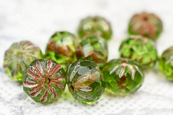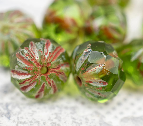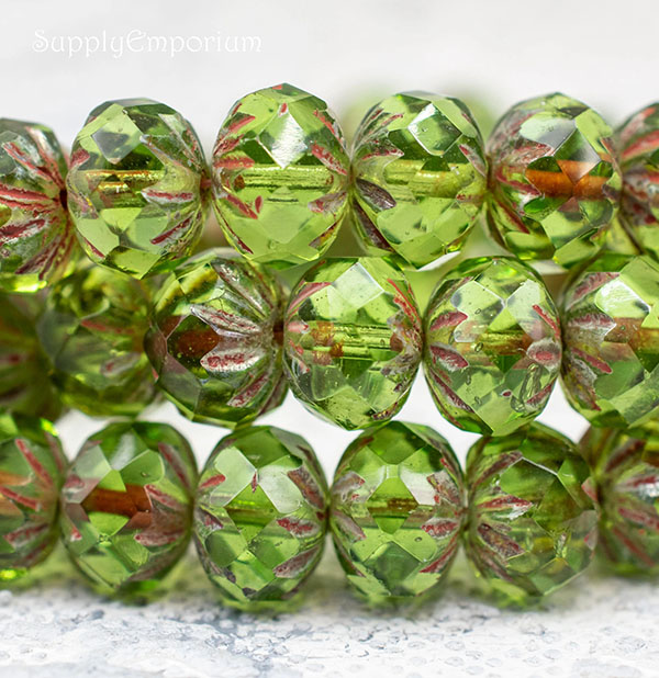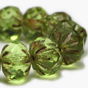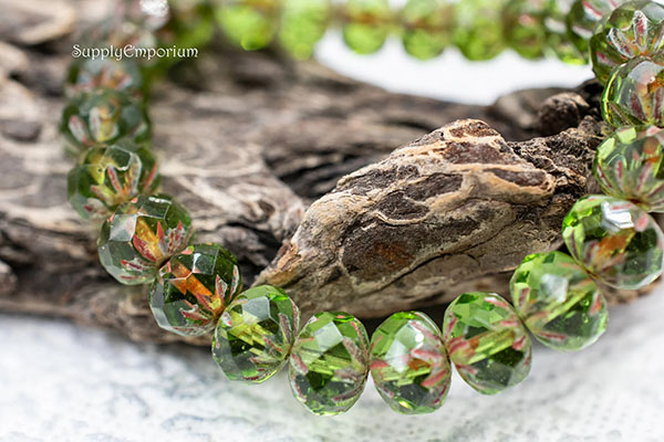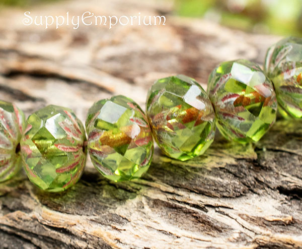 6x9mm Peridot Picasso Czech Cruller – 10 pieces – 2612R