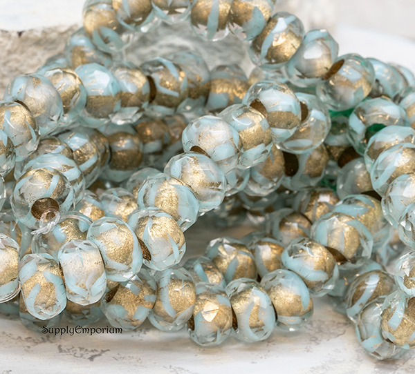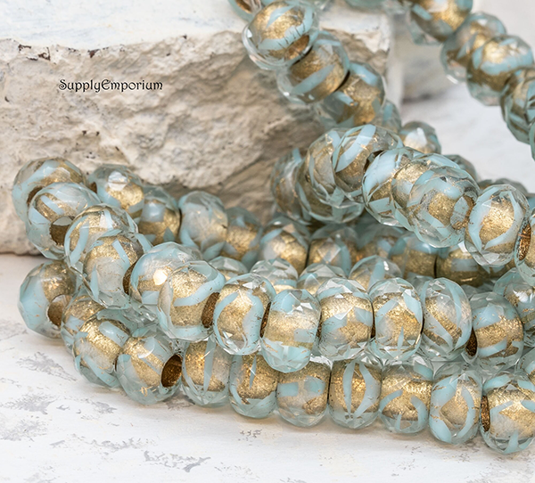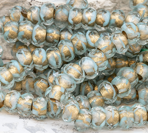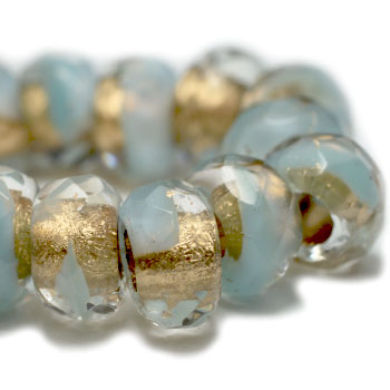 6x9mm Sky Blue w/Gold Czech Roller Bead – 12 pieces – 925ROC16