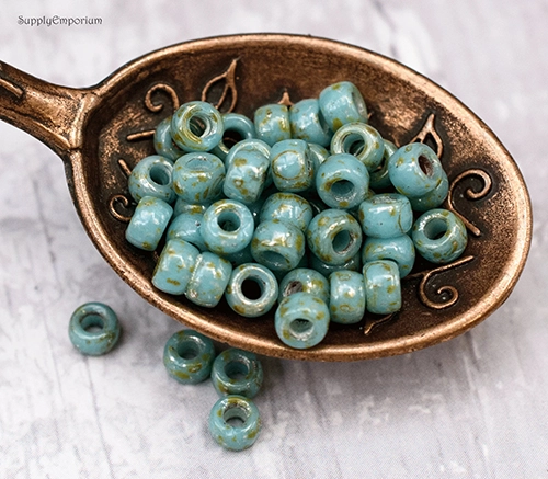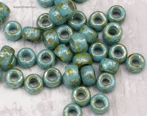 7/0 Turquoise Blue Picasso Matubo Seed Bead – Quantity: 10 grams – 1343