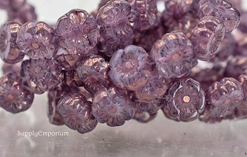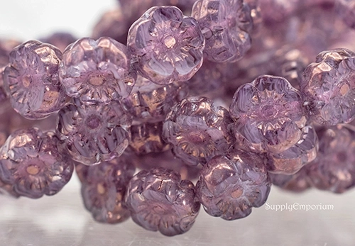7mm Amethyst/Lt Bronze Czech Flower – 12 pieces – 6518