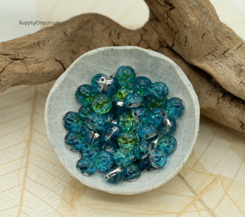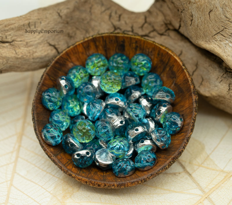 7mm Backlit Aquasol Baroque Czech 2 Hole Cabochon – 24 Pieces – 6162-S2