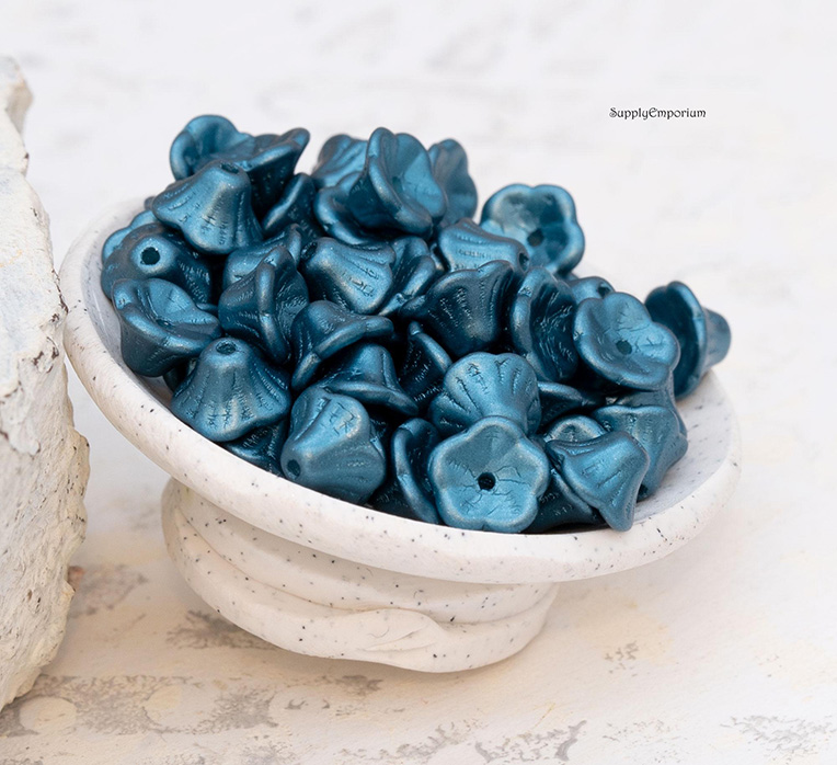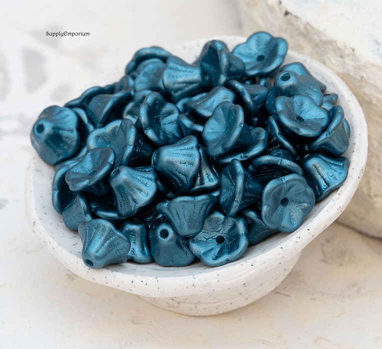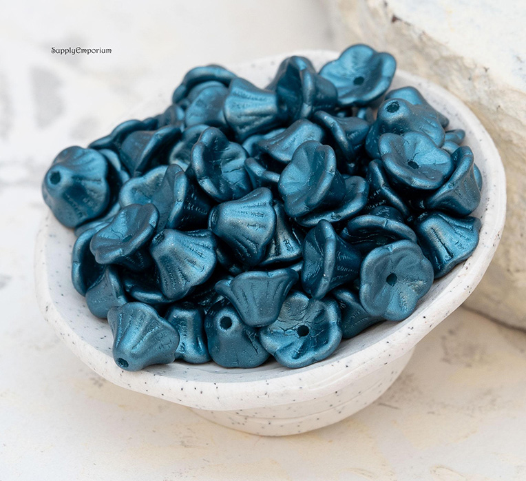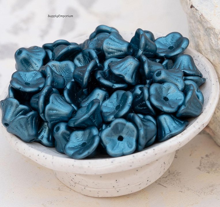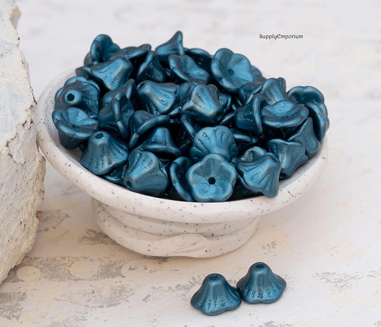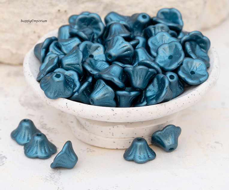 7x5mm Pastel Petrol Czech Cup Flower – 24 pieces – 3546R