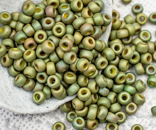 8/0 Matte Opaque Light Olive Luster Miyuki Seed Bead – Quantity: 12 grams – 732R