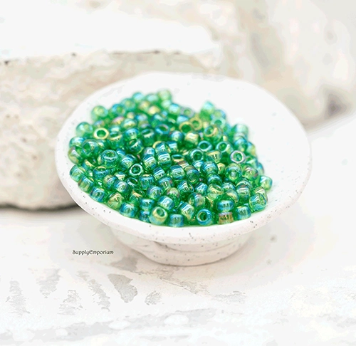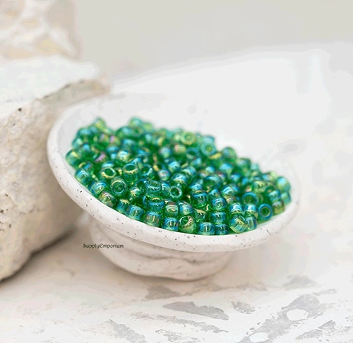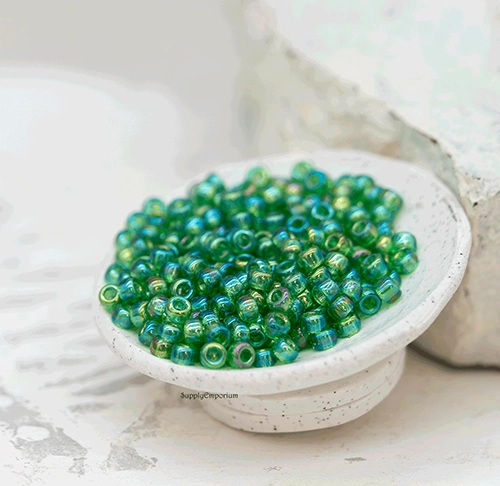 8/0 Trans Lt Green AB Miyuki Seed Bead – Quantity: 15 grams – 6448RR
