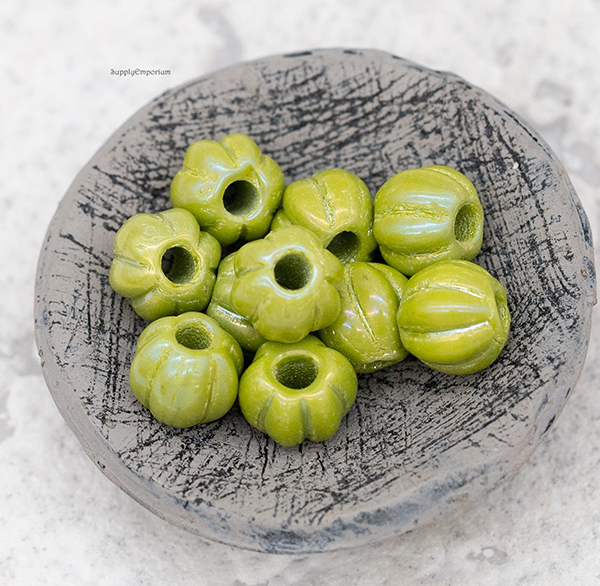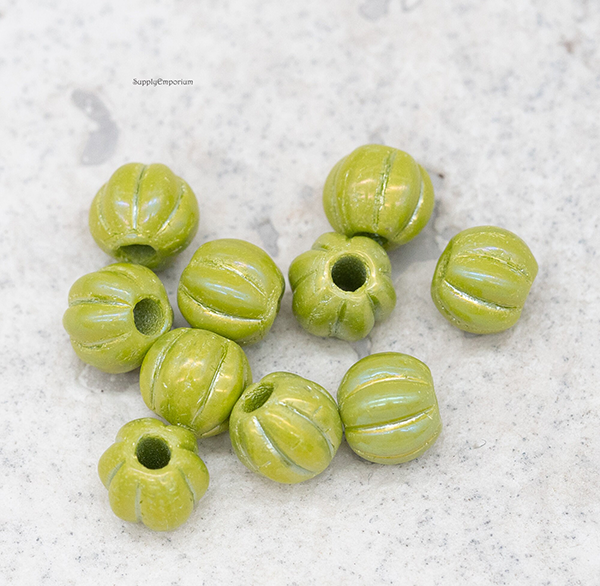 8mm Avocado AB Czech Large Hole Melon – 10 pieces – 7479ROC26