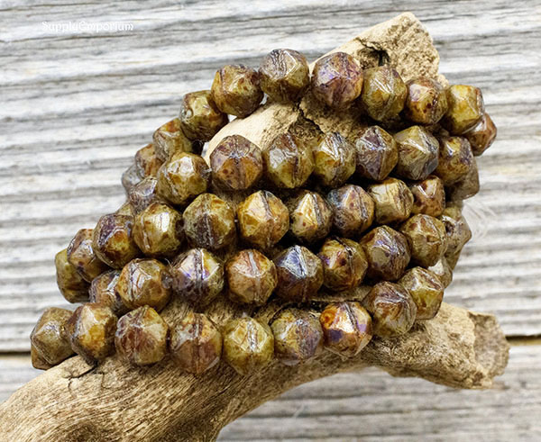 8mm Champagne Picasso Czech English Cut Round – 20 pieces – 3488R