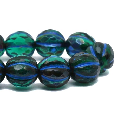 8mm Cobalt Washed Emerald Czech Melon Round – 12 pieces – 5827R