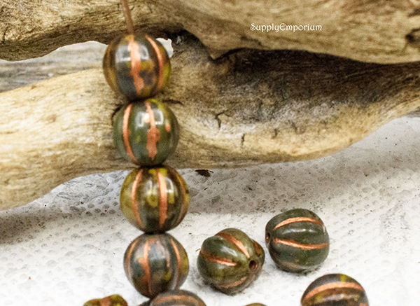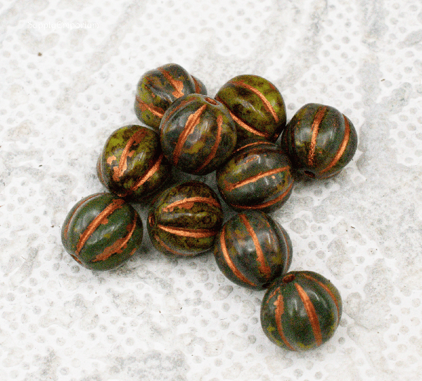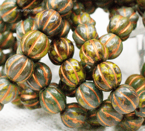 8mm Copper Wash Artichoke Picasso Czech Melon Round – 10 pieces – 2896RA