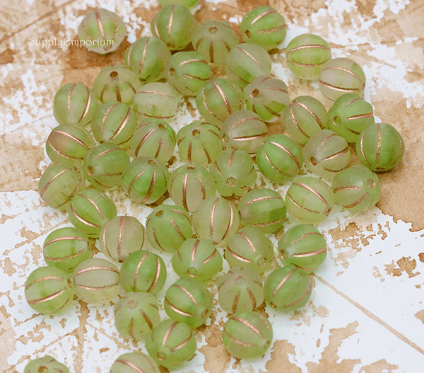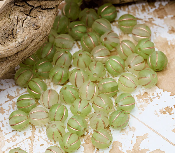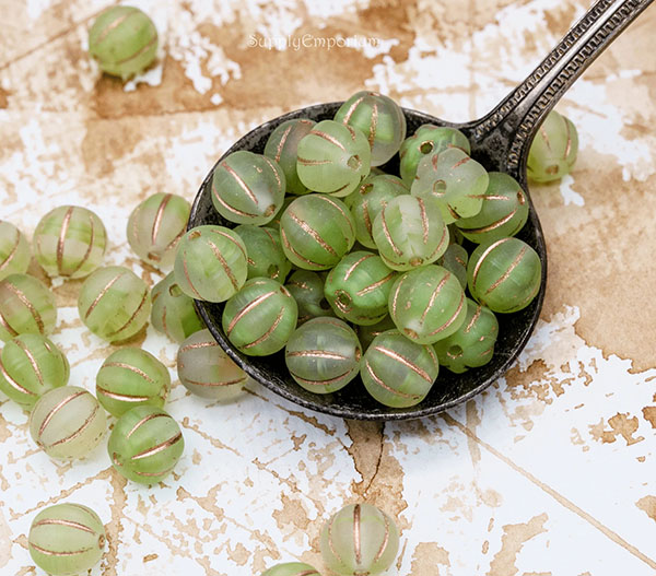 8mm Frosted Lime with Gold Wash Czech Melon Round – 20 Pieces – 3504R