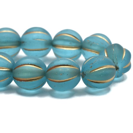 8mm Gold Wash Matte Turquoise Czech Melon Round – 10 pieces – 3719R