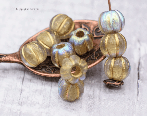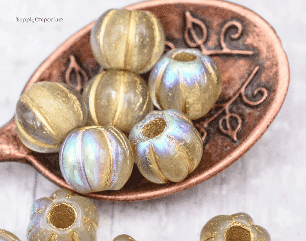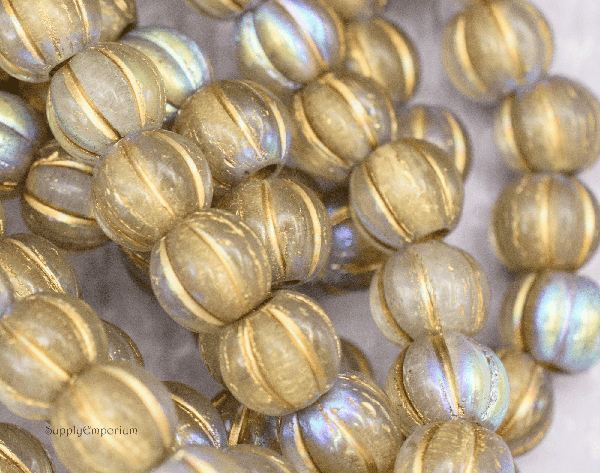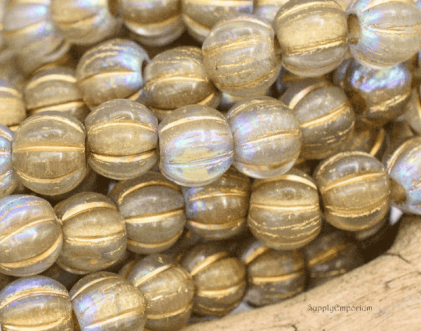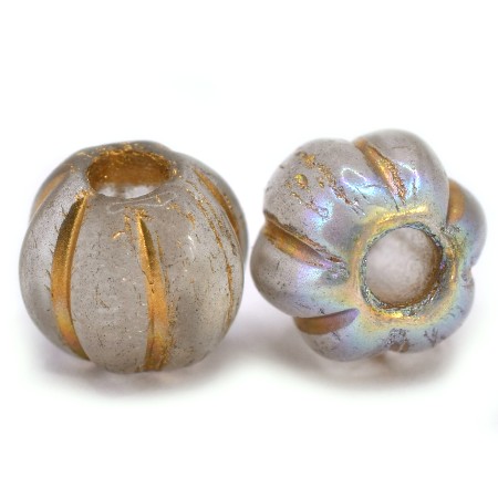 8mm Gold Wash Trans Silver AB Czech Large Hole Melon – 20 pieces – 3955RAC1