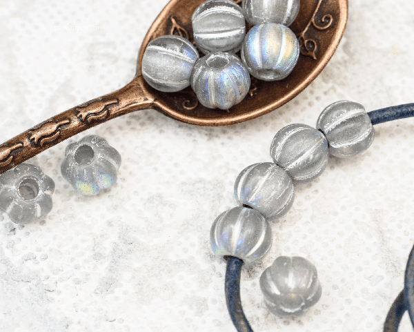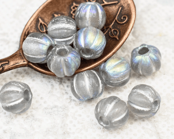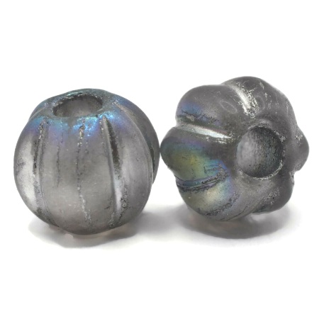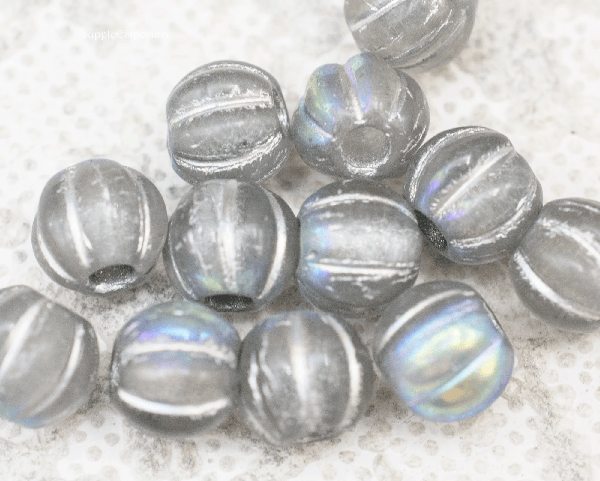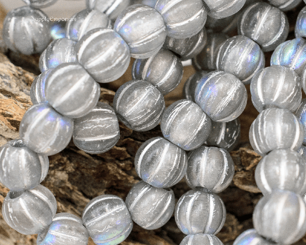 8mm Grey Silver AB Czech Large Hole Melon – 10 pieces – 7343ROC25