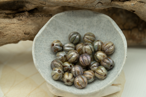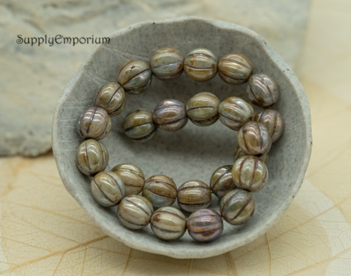 8mm Luster Op Green Czech Melon Round – 25 pieces – 1935