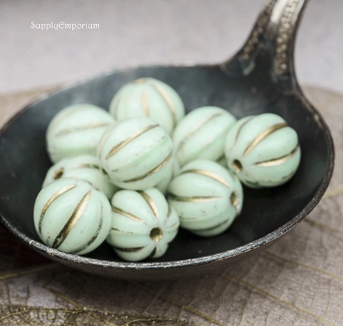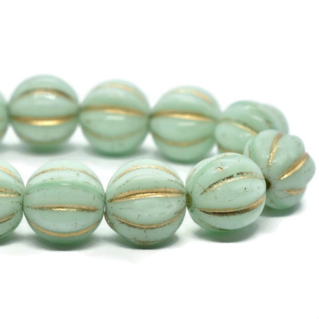 8mm Mint w/Gold Wash Czech Melon Round – 10 pieces – 3092RR