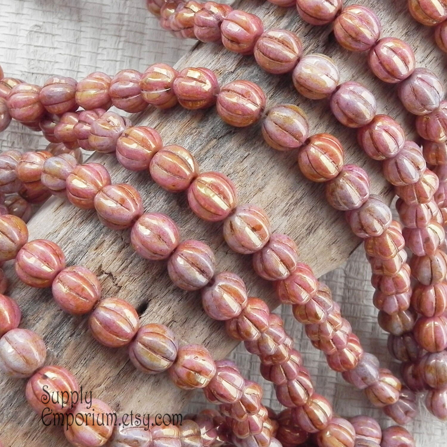 8mm Op Rose Gold Topaz Czech Melon Round – 25 Pieces – 628