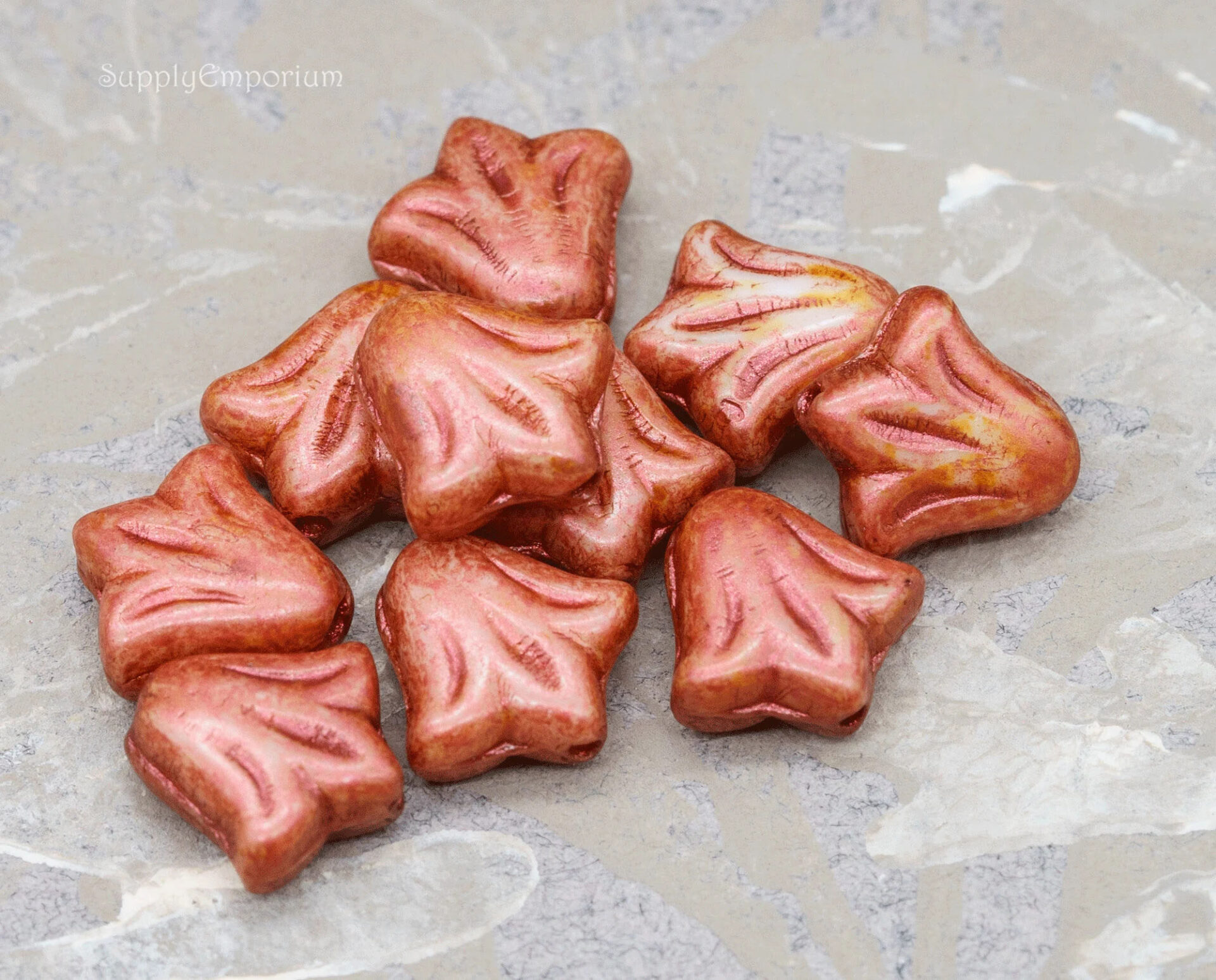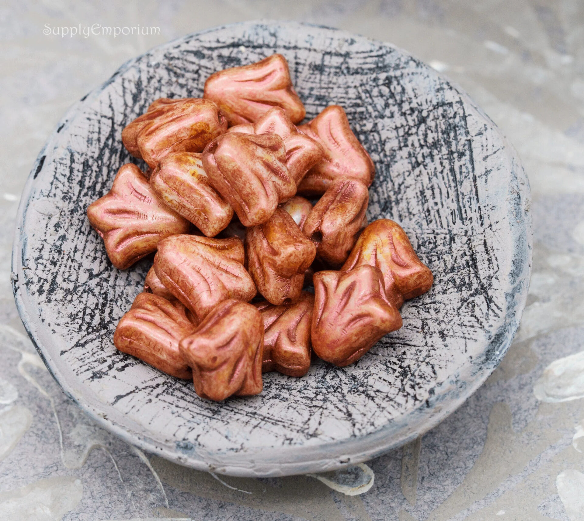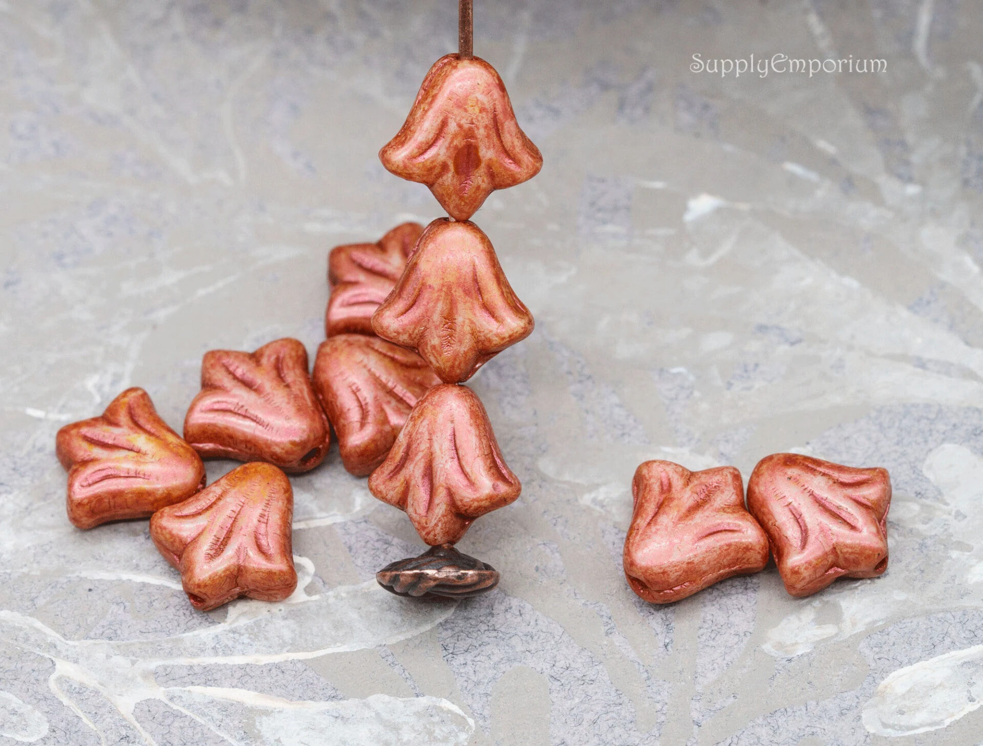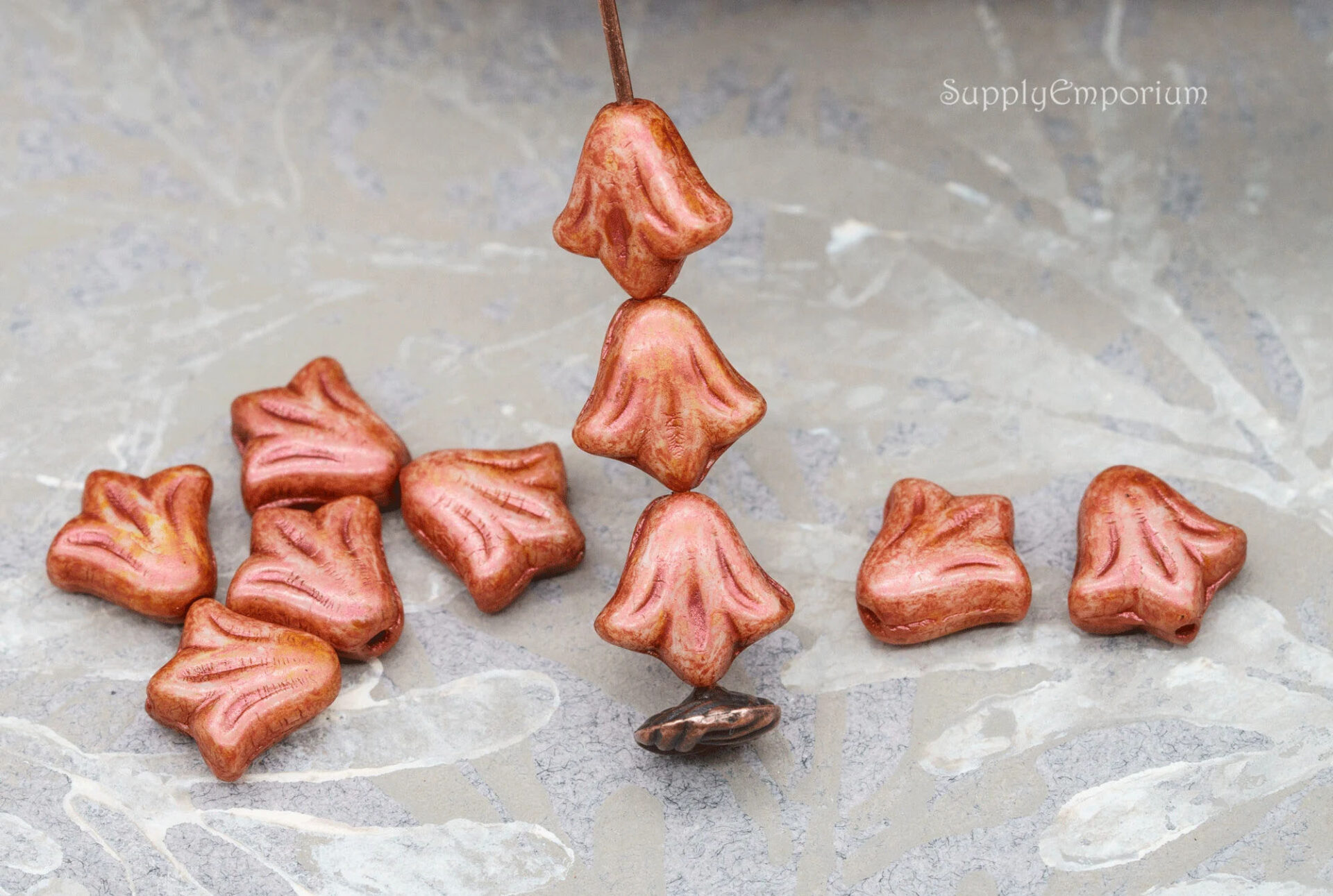8mm Pink Copper Washed Chalk Czech Lily Flower – 12 Pieces – 4687R