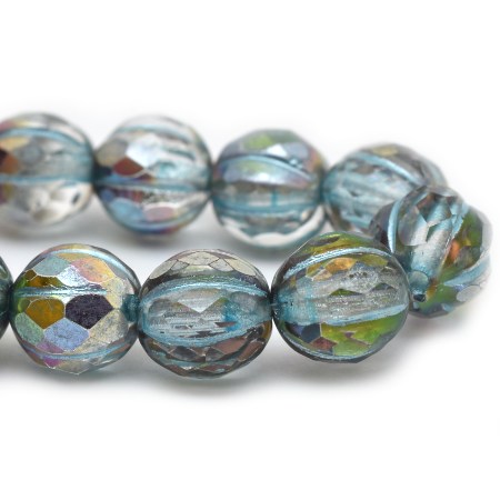 8mm Trans AB w/Blue Met Wash Czech Melon Round – 20 pieces – 3521R