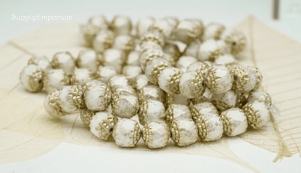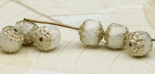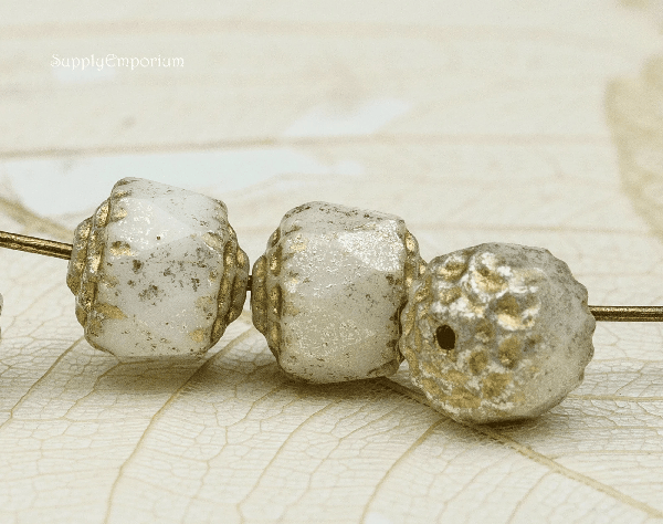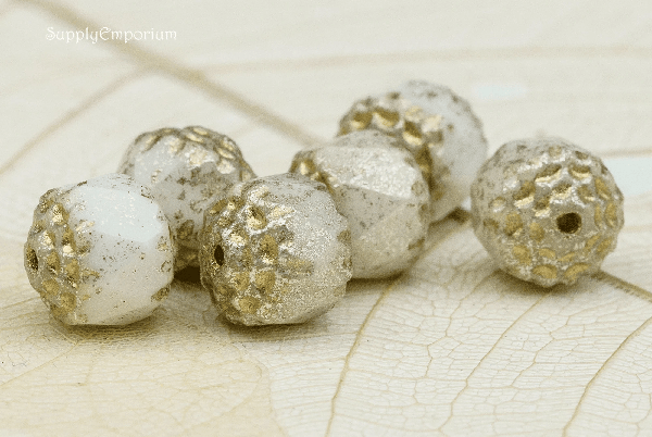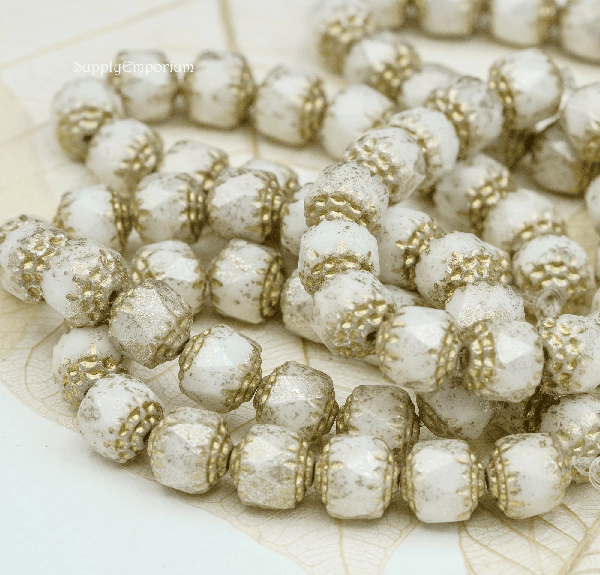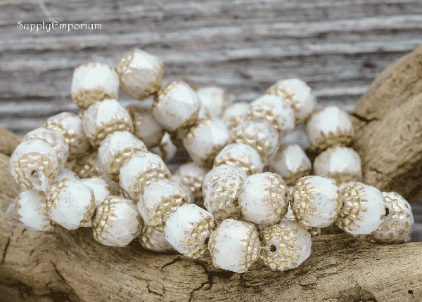 8mm White w/ Gold Wash Czech Cathedral – 15 pieces – 2011R