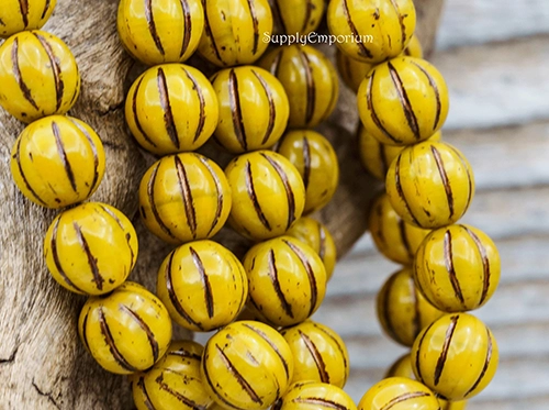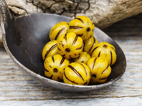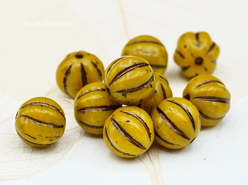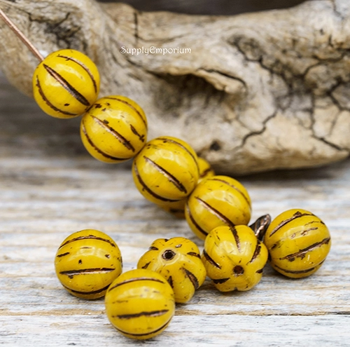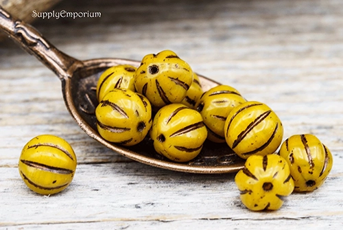 8mm Yellow w/Metallic Brown Wash Czech Melon Round – 10 pieces – 2156R