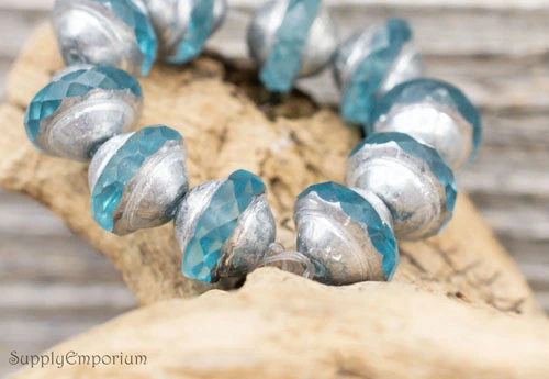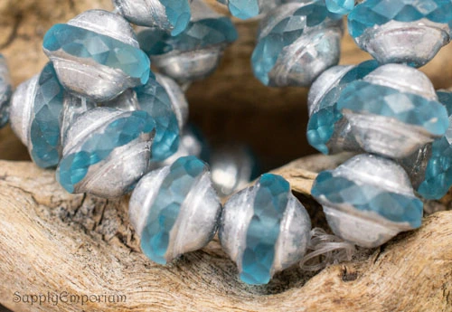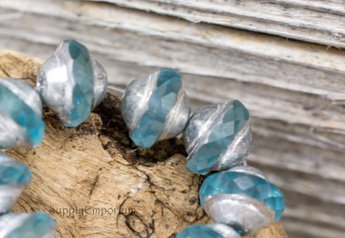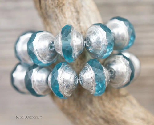 8x10mm Baby Blue Silver Picasso Czech Saturn – 10 Pieces – 6096R