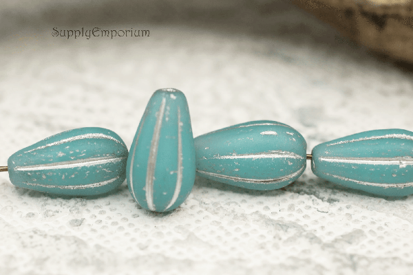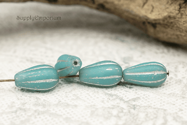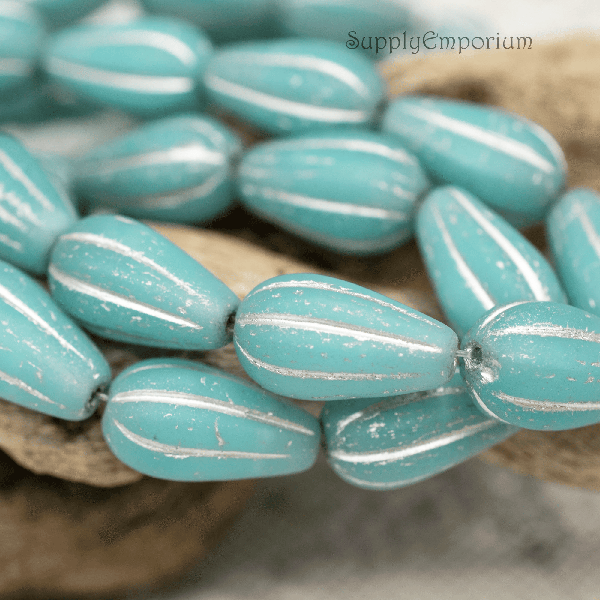 8x15mm Sky Blue Silver Wash Czech Melon Drop – 8 pieces – 1610R