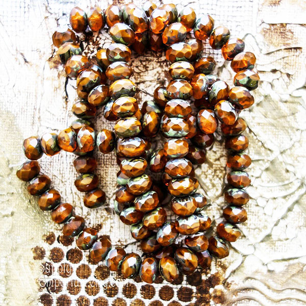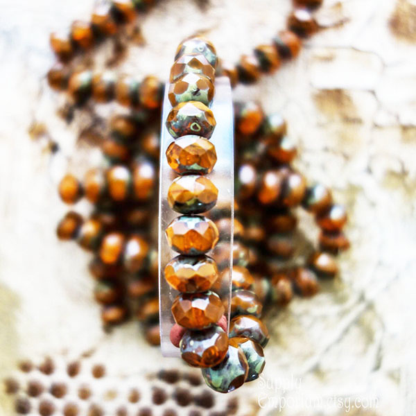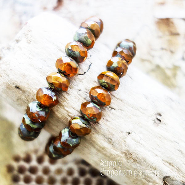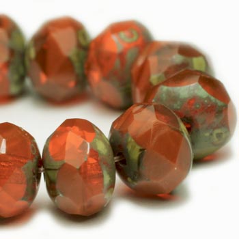 8x6mm Orange Brick Picasso Czech Rondelle – 25 pieces – 2851